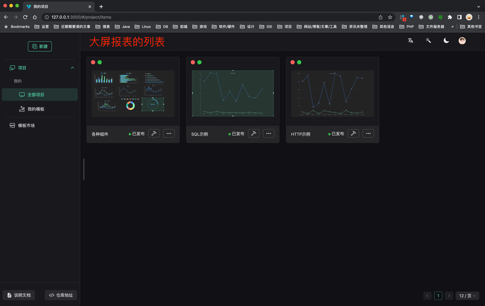 大屏设计器 大屏列表 大屏预览 大屏编辑